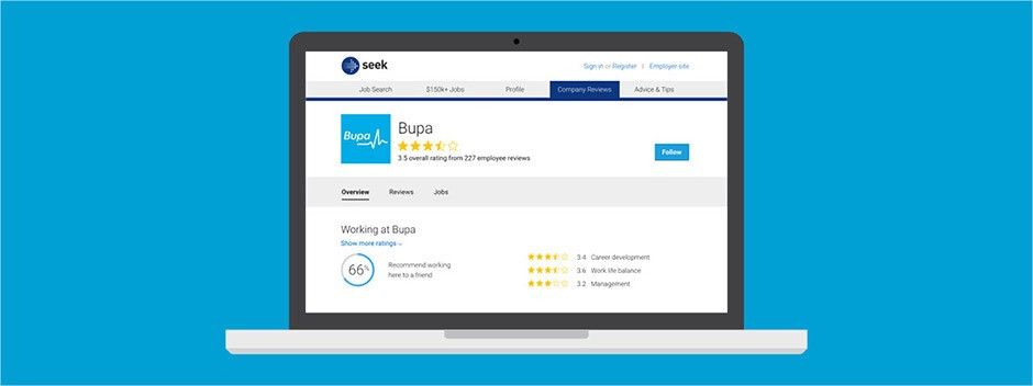 With 18,000 employers across Australia and New Zealand, Bupa’s Company Reviews page launched in 2015, with Nguyen and Biggs driving activity on the organisation’s page since February this year. According to Biggs, Resourcing Partner, Volume at Bupa Australia and New Zealand, the pair use Company Reviews because SEEK is “a very popular job forum in Australia, which means the likelihood of a review coming through SEEK is just far greater compared to other sites.”