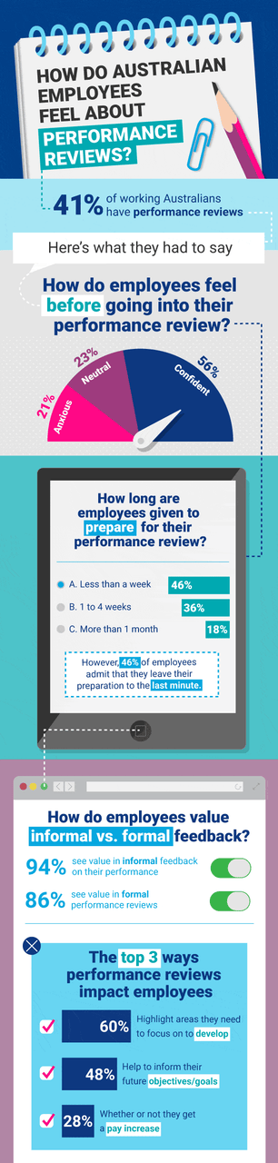 How do Australian employees feel about performance reviews?Performance managementWritten by SEEKWith 41% of Australian employees having experienced a performance review, we find out what they really think about the process.