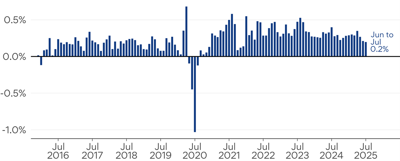 “This likely reflects the ongoing easing in labour market tightness, with employment growth 0.5ppt slower over the 12 months to June 2025 than it was to June 2024 and less people switching jobs.”
