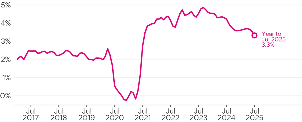 Following eight months of steady annual growth between 3.6% and 3.7%, annual growth has now slipped 0.3ppt in two months to be 3.3%.