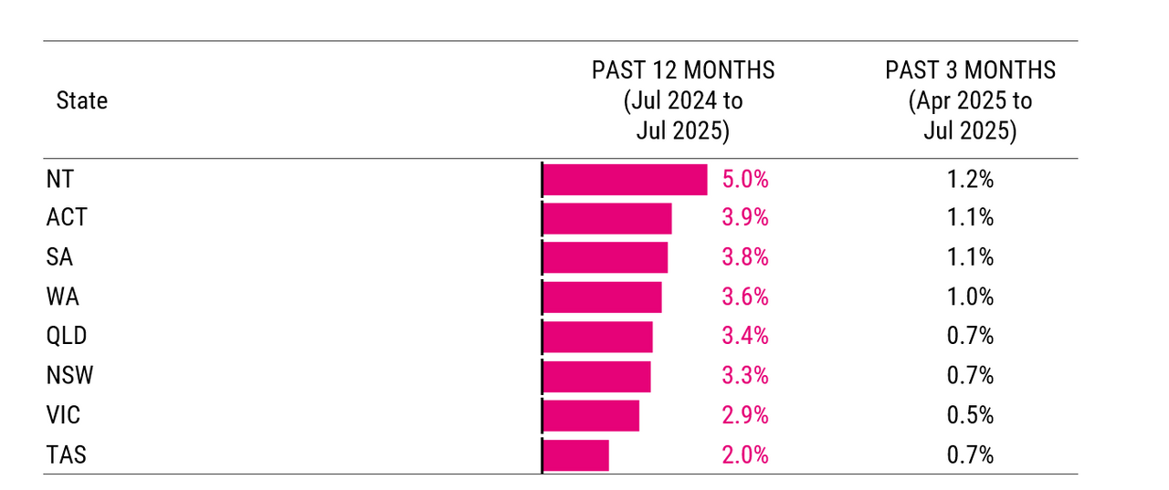 Advertised salary growth in the Northern Territory has continued to outpace the rest of the country, with annual growth of 5.0% despite slowing in July.
