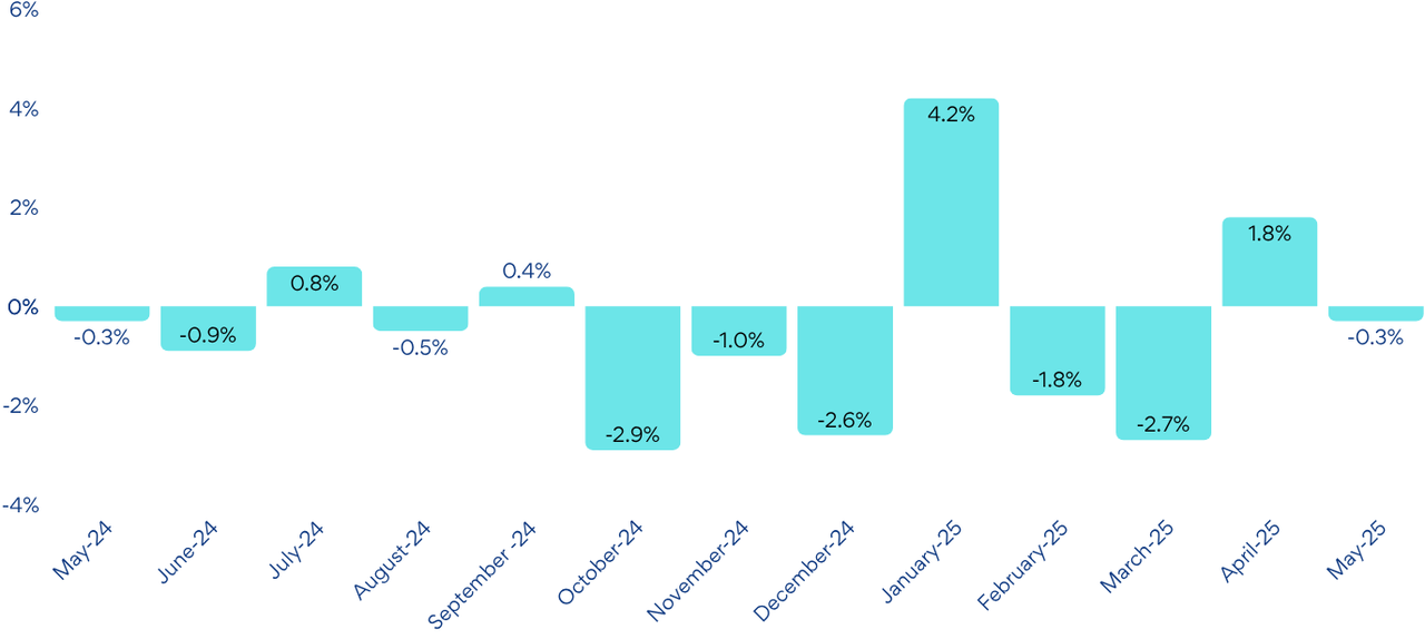 Figure 1: National SEEK job ad percentage change m/m (May 2024 to May 2025)