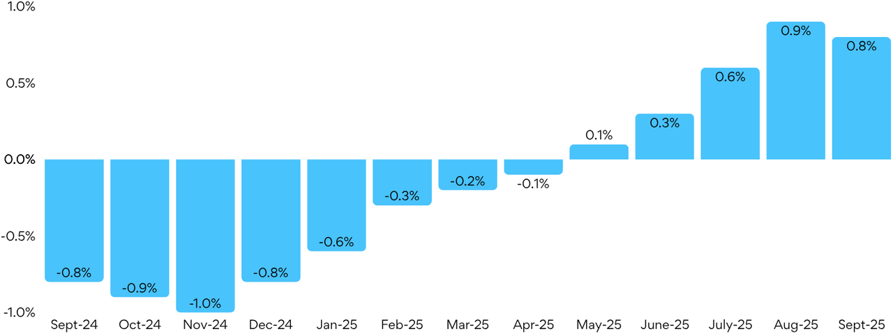Figure 1: National SEEK job ad percentage change m/m (September 2024 to September 2025)