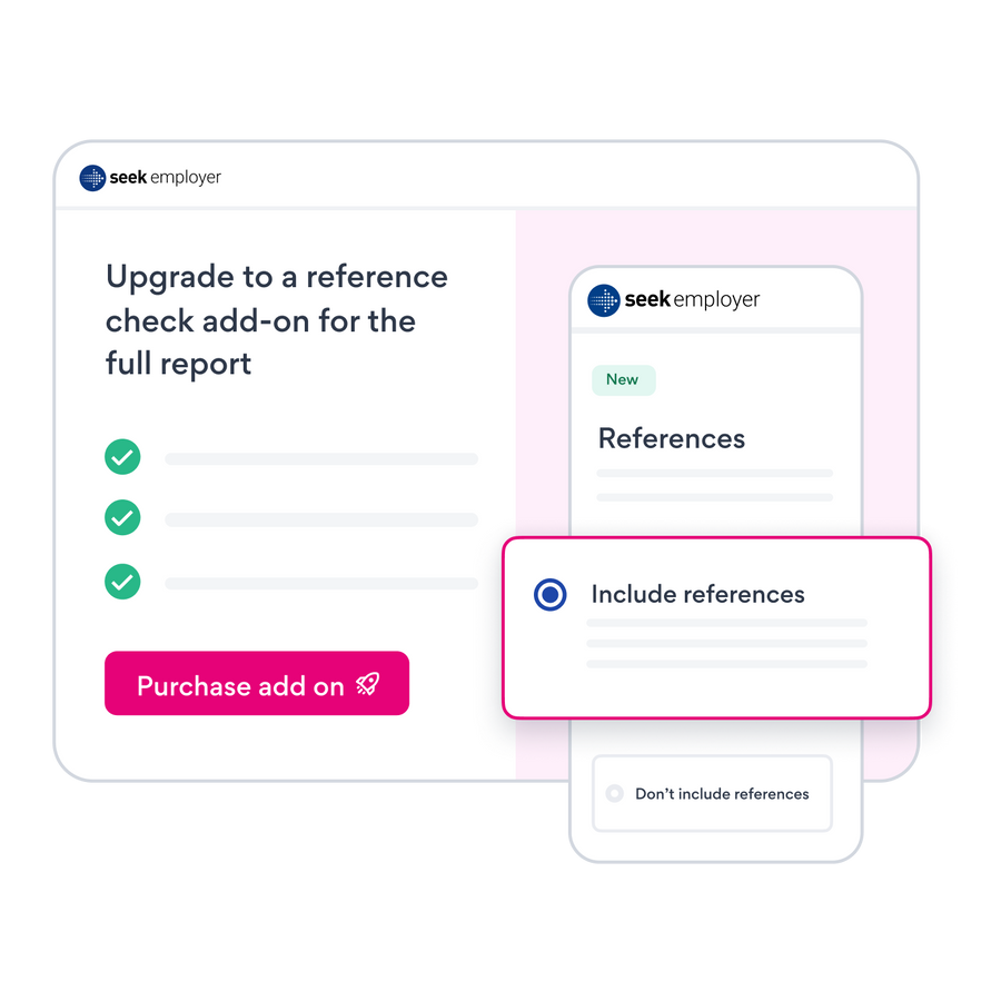 Reference checks are now reusable for candidates, so you can access completed checks instantly and make faster decisions. Start with one free check per ad and purchase more as needed.