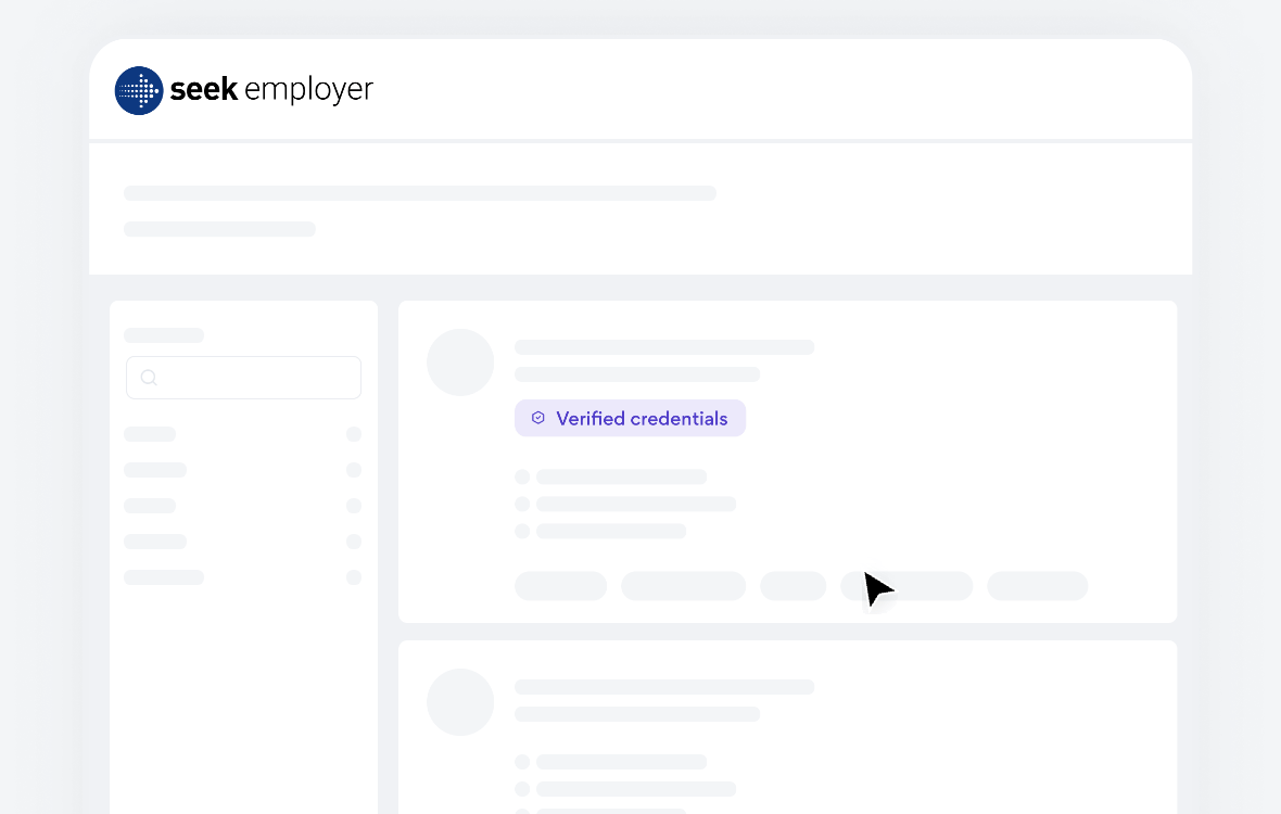 Selecting the right candidate is simpler and more reliable with SEEK Pass. Verified credentials are shown on candidate profiles, so you can better trust any claims they make. This added transparency ensures you focus only on applicants whose qualifications are genuine, giving you peace of mind in every stage of the hiring process.